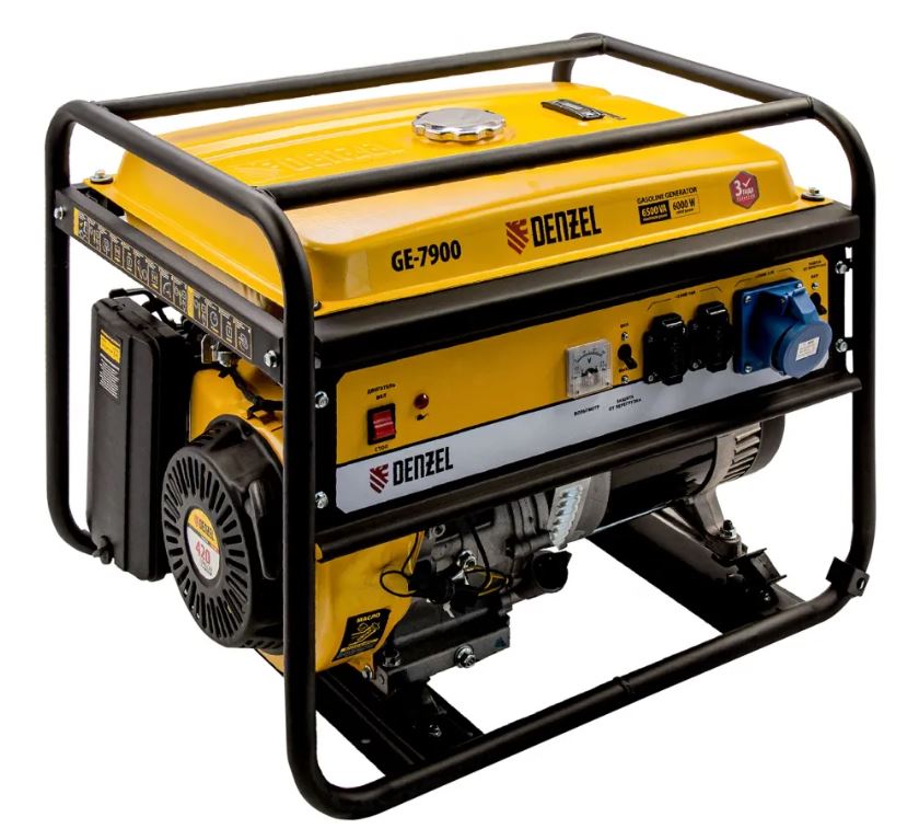 Генератор бензиновый GE-7900, 6,5 кВт, 220В/50Гц, 25 л., ручной старт "Denzel"