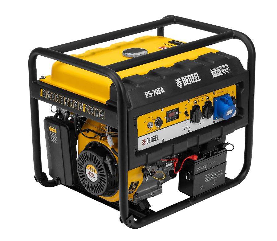 Генератор бензиновый PS 70 EA, 7.0 кВт, 230 В, 25 л, коннектор автоматики, электростартер "Denzel"